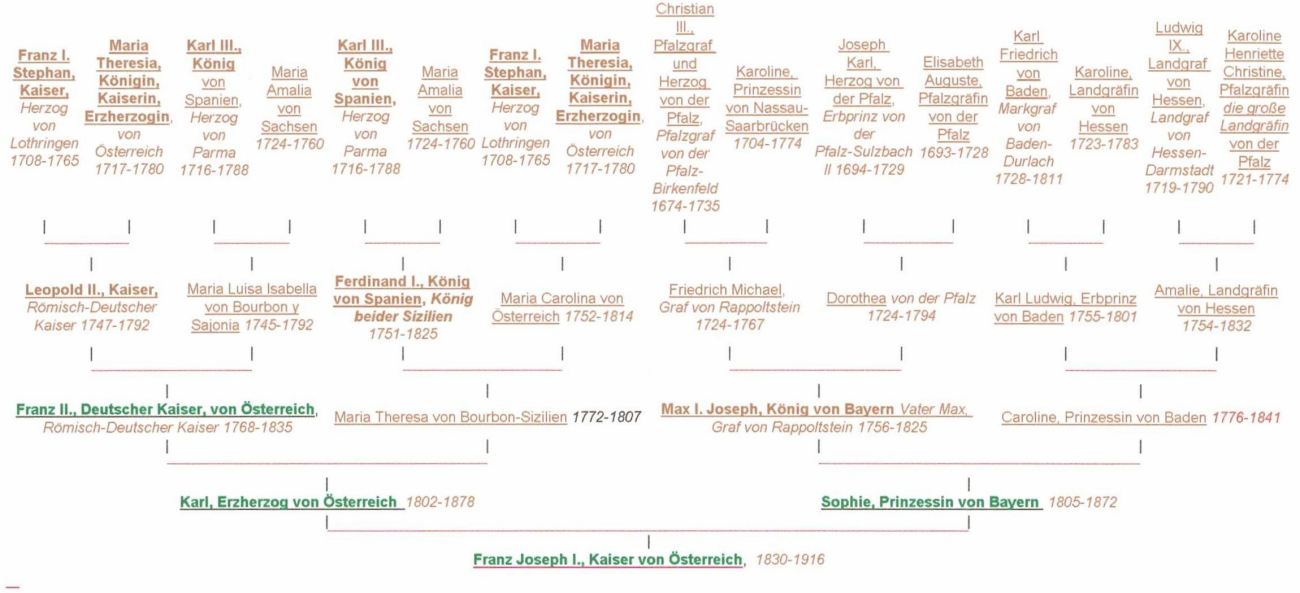 Nachkommen von König Rudolf I. , Nachkommen von Kaiser Maximilian I. , Nachkommen von Kaiserin Maria Theresia , Vorfahren von Kaiser Franz Joseph ,