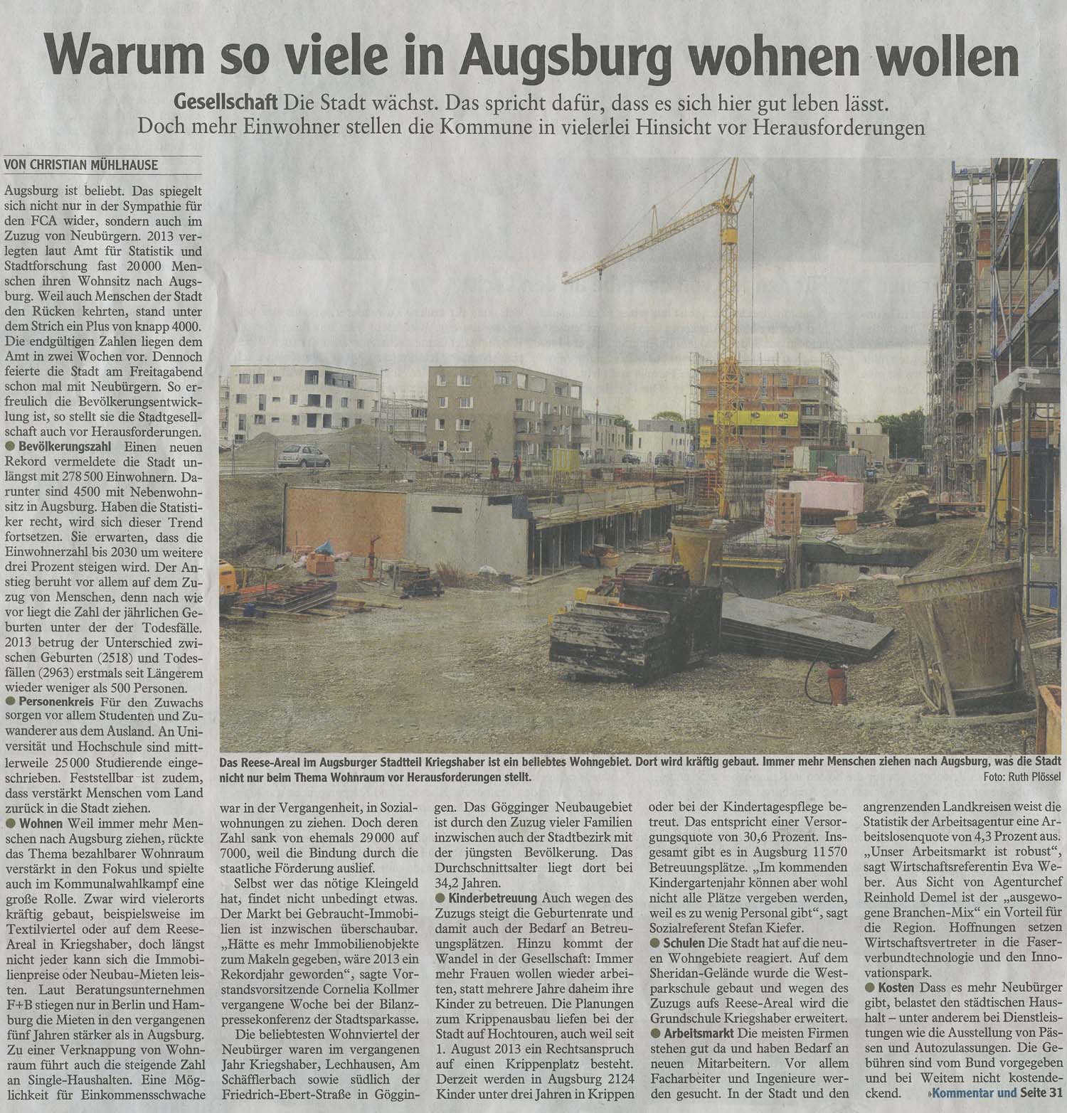 Neubaugebiete in Augsburg u.a. Reese-Park (AZ 19-Mai-2014)