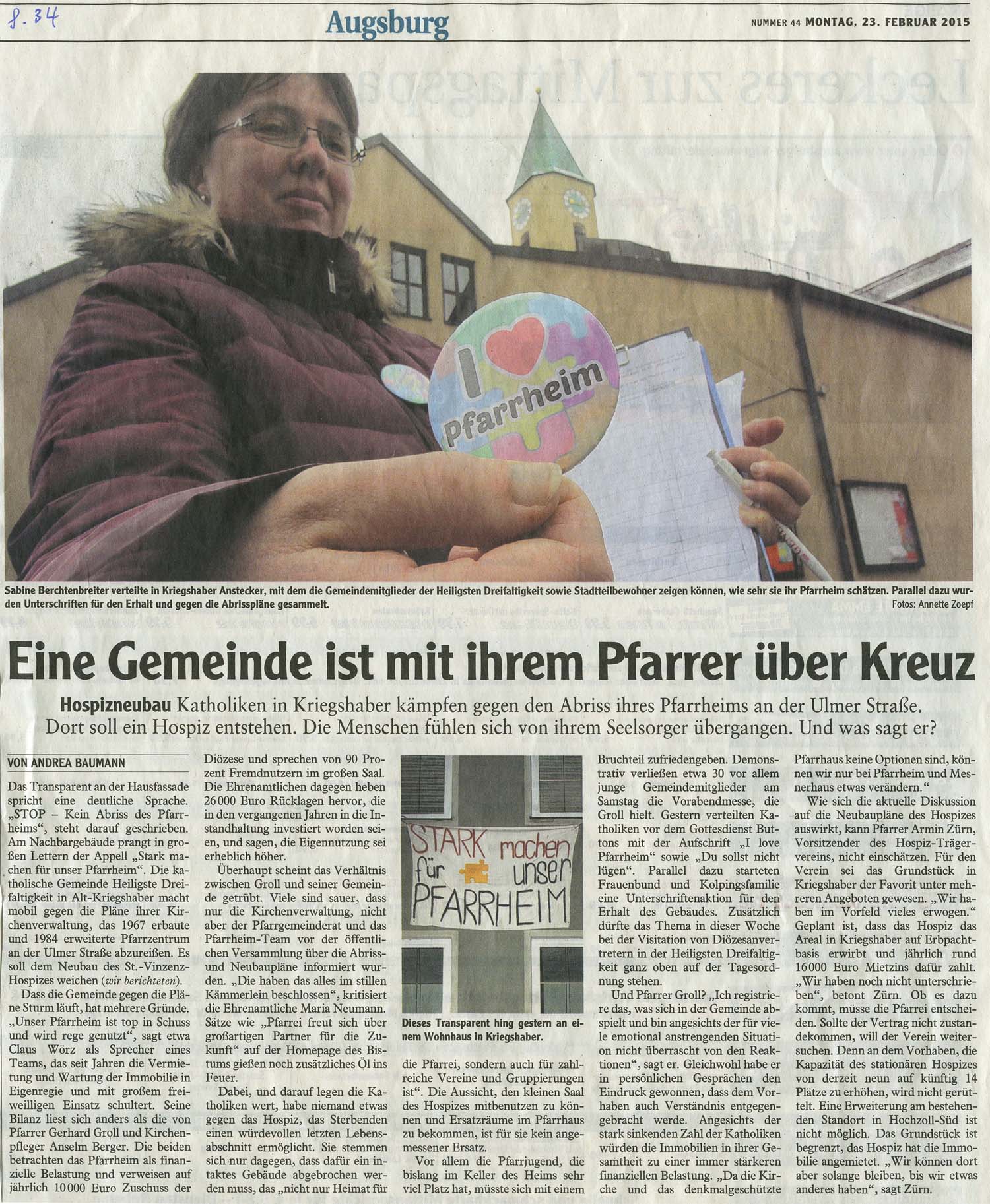Katholiken gegen Abriss ihres Pfarrheims (AZ 23-Feb-2015)