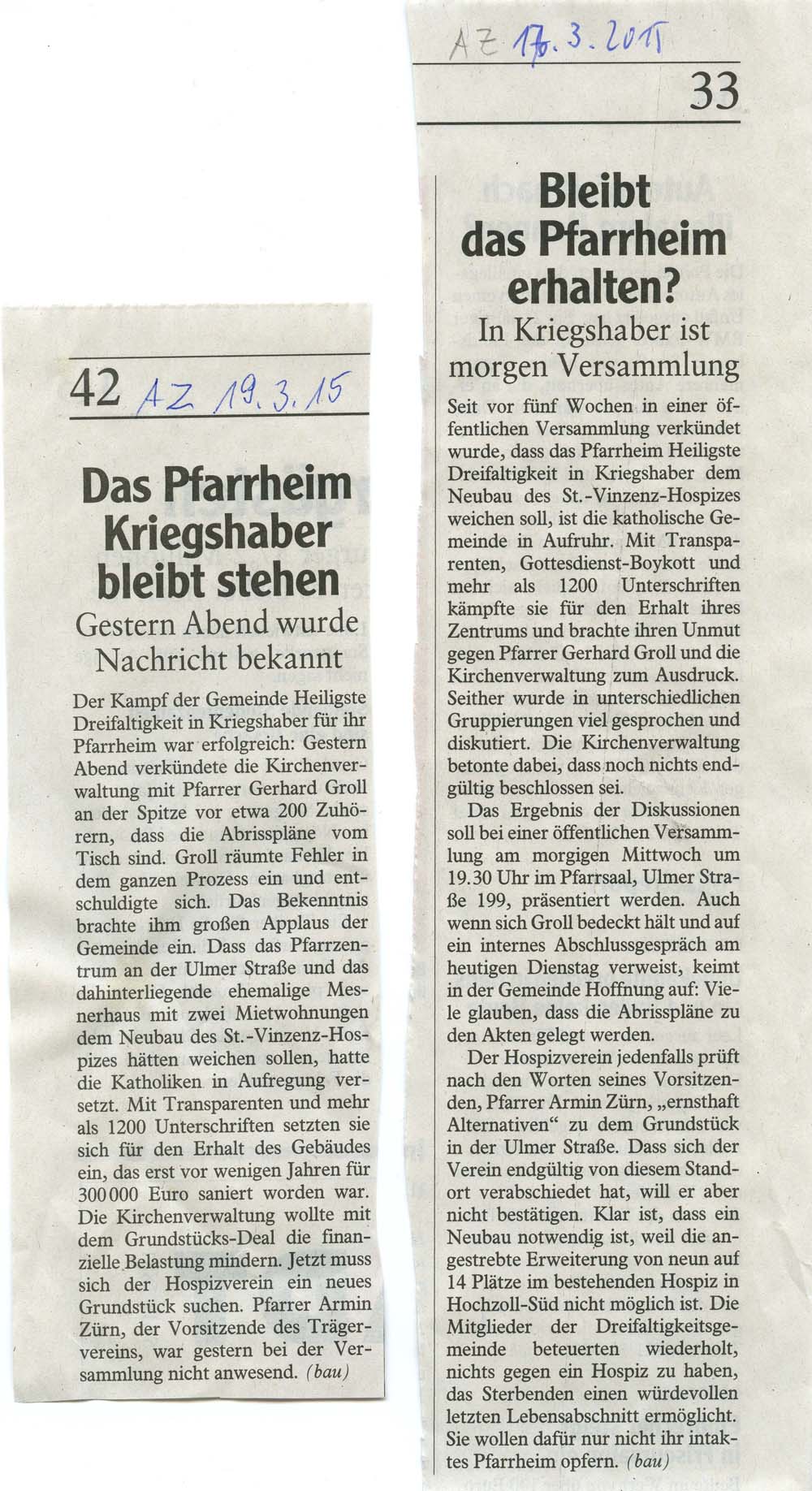 Das Pfarrheim Kriegshaber bleibt stehen (AZ 19-Mar-2015)