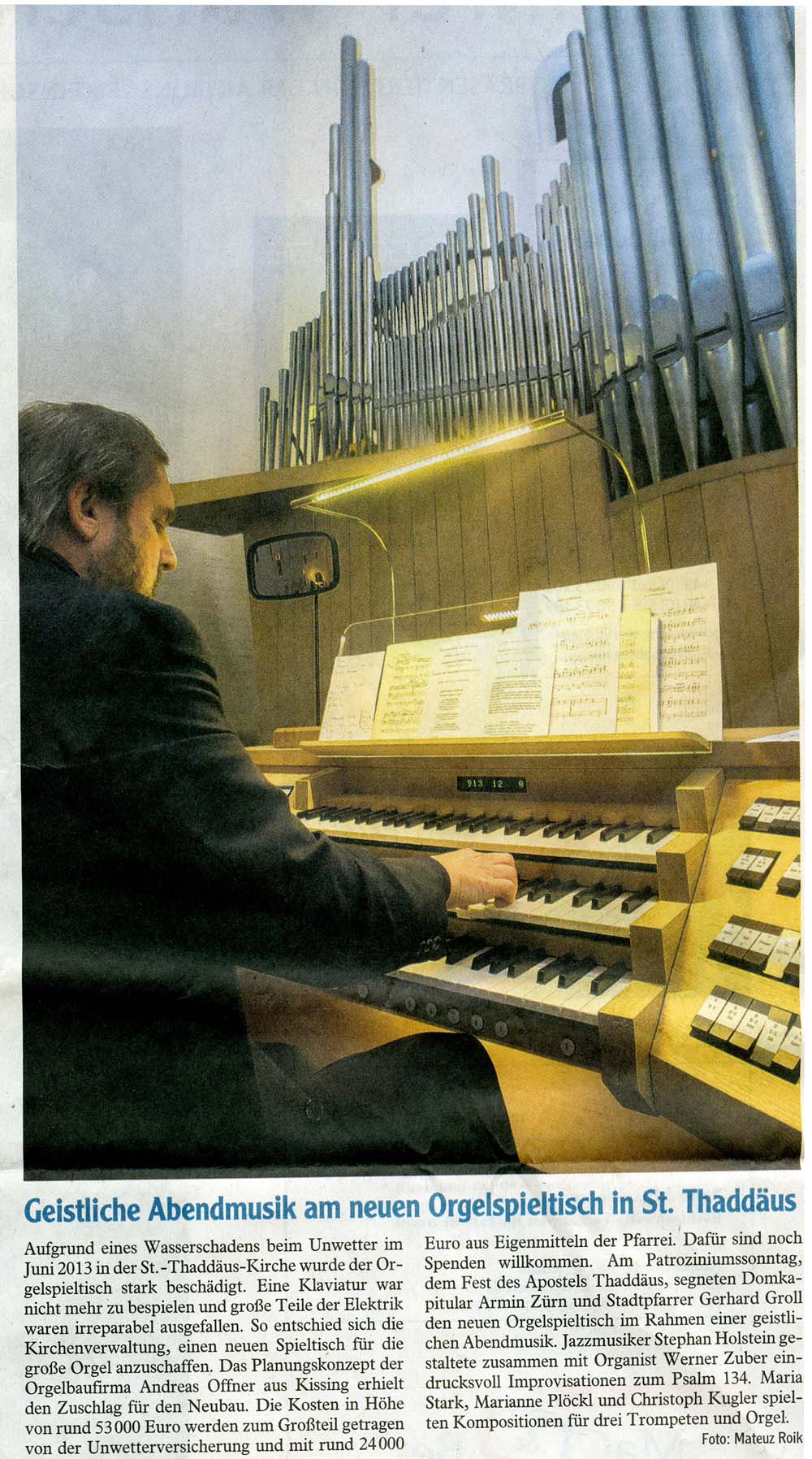 Geistliche Abendmusik am neuen Orgelspieltisch in St. Thaddäus (AZ WA 30-Okt-2014)