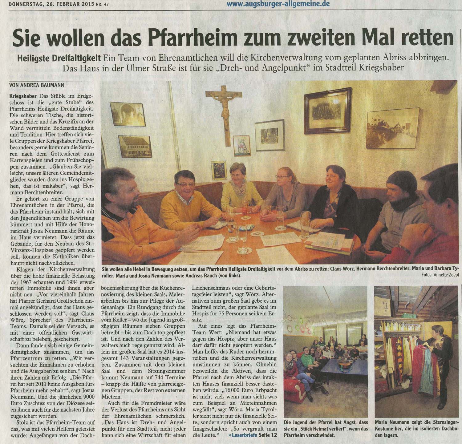 Sie wollen das Pfarrheim zum zweiten Mal retten (AZ WA 26-Feb-2015)