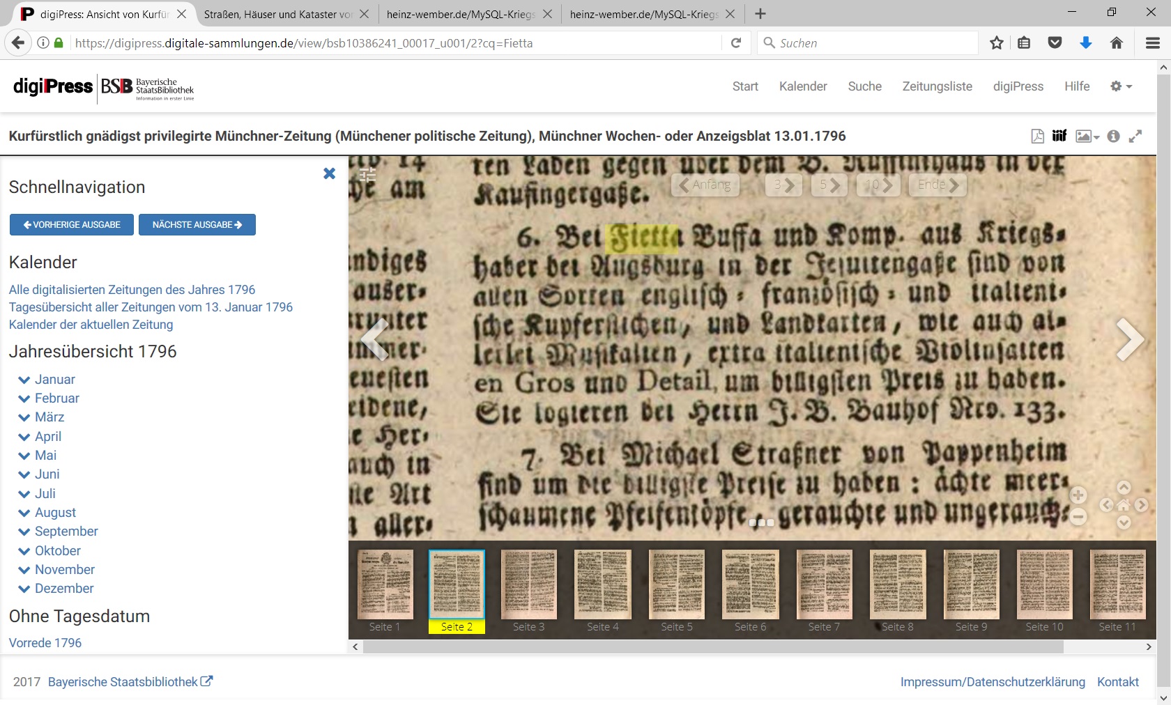 Erwähnung von Fietta in einem Zeitungsausschnitt aus dem Jahr 1796