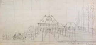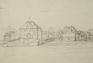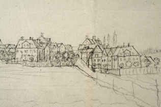 Entwurf für das Gut Kriegshaber, rechts das ältere Haus ,mit der heutigen Anschrift Ramsbergstr. 19