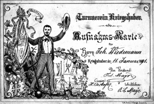 Kriegshaber Turnverein, Aufnahme-Karte von 1891
