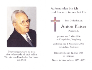 Sterbebild Anton Kaiser