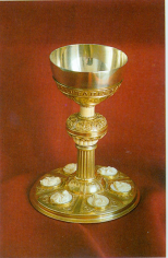 Der wertvolle, mit Elfenbeinschnitzereien verzierte Kelch ist eine alte Stiftung an die Kirche