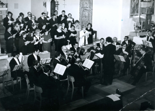 Kirchenchor bei einer Probe zu einem Konzert 1971