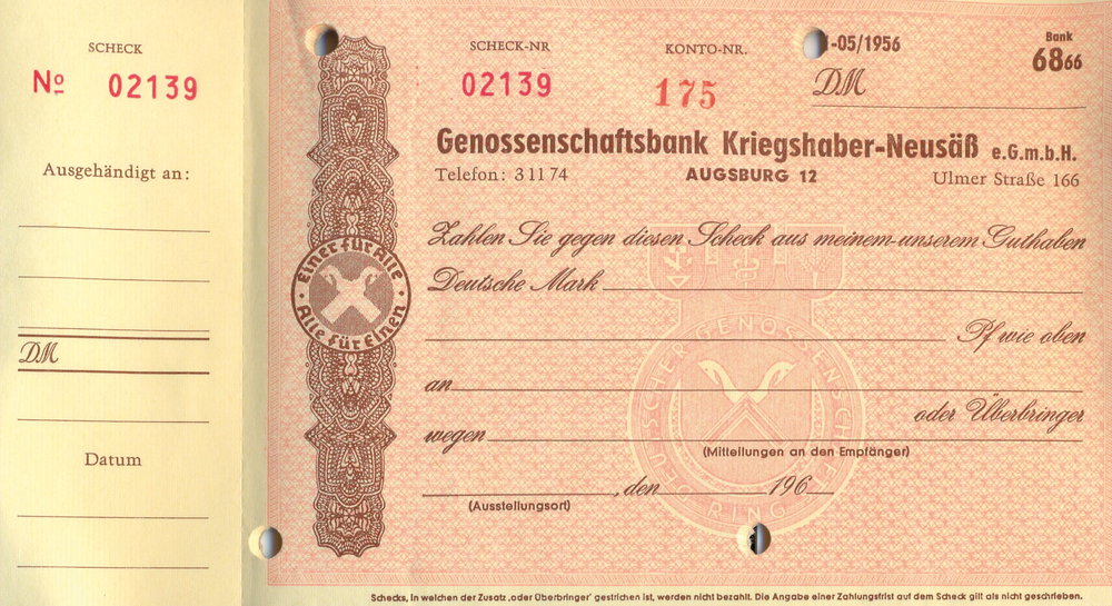 Krriegshaber: Handels- und Gewerbebank, historischer Scheck 1962