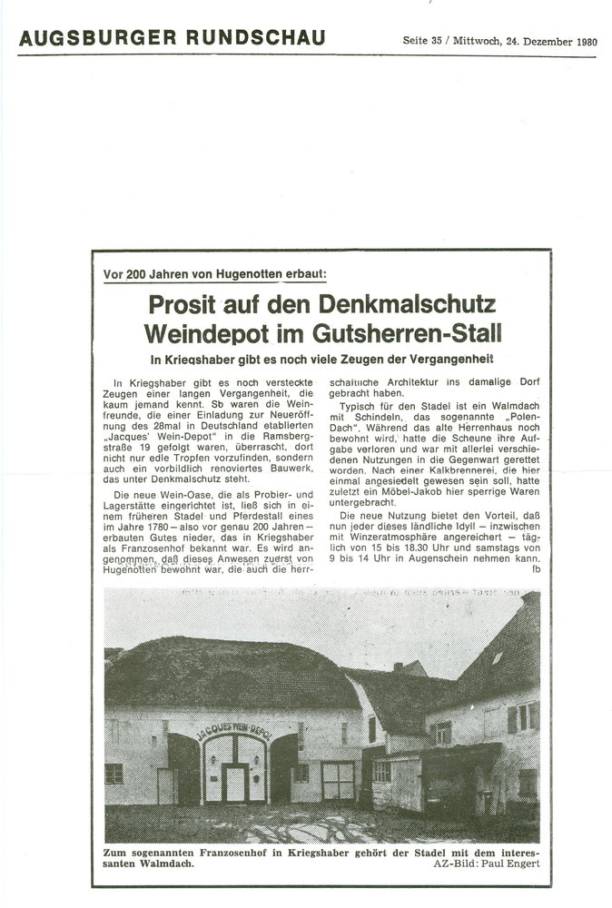 Herrschaftsgut Zeitungsausschnitt 1980