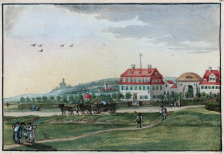 Schefold 56612: Schmid'sches Gartengut (in Kriegshaber). Von Thom. Weber um 1818. Aquarell 7,3X10,7 Augsburg StKunstSlg (G481).