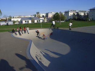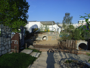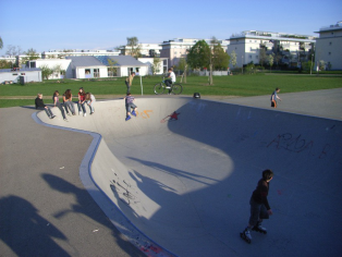 Kriegshaber: Spielplatz zwischen Madisonstrasse und Tylerstrasse, dahinter kath. Wolfhard-Zentrum mit Kindergarten, 2009