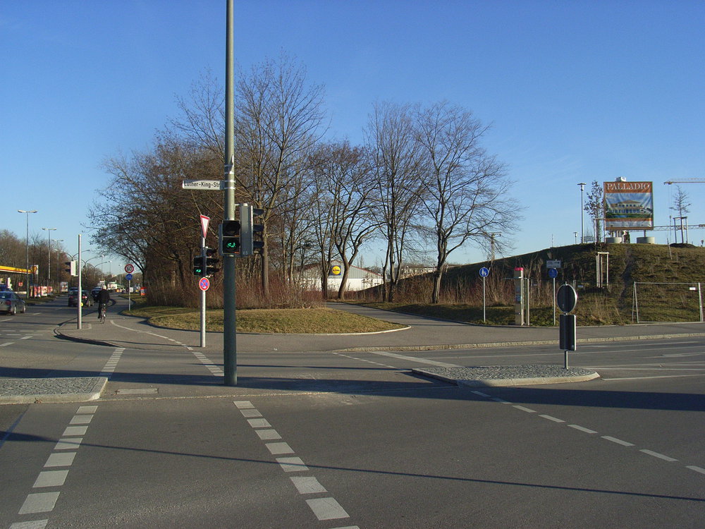 Kriegshaber: Luther-King-Str. (oestlicher Arm) Ecke Bgm-Ackermann-Str., mit Bauschild fuer das Cafe am See, 2008