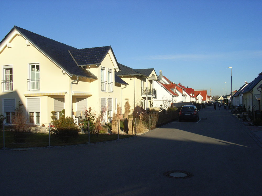 Kriegshaber: Mark-Twain-Str. im ehemaligen Supply Center, angenehm: jedes Haus sieht anders aus, 2008