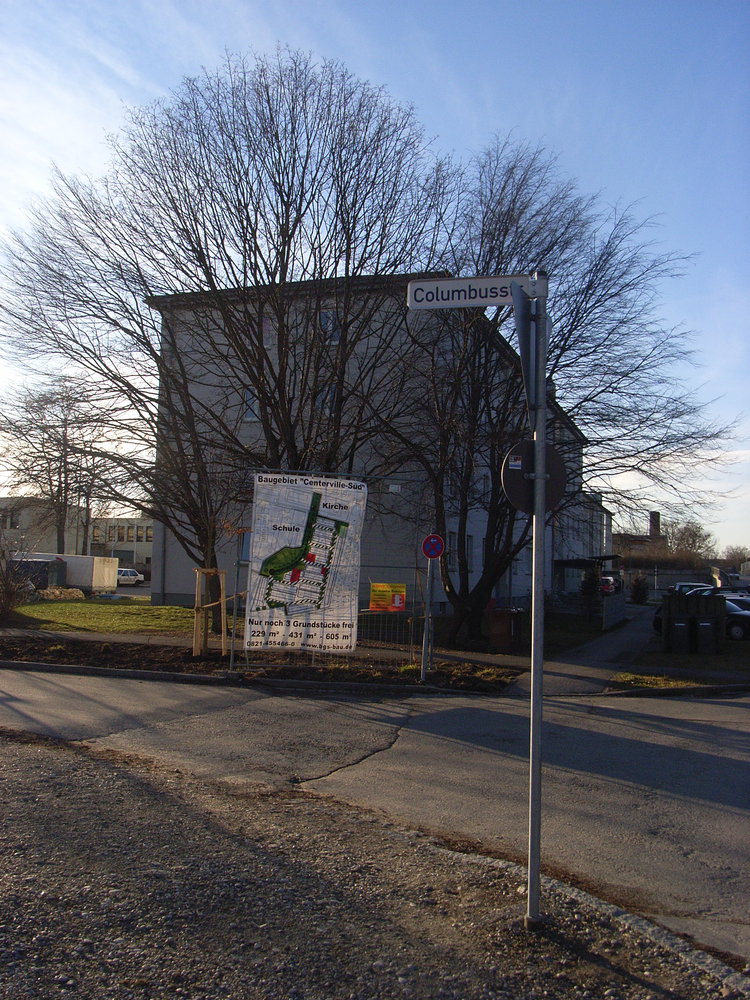 Kriegshaber: Columbusstr. links Blick auf die Centerville Volksschule, 2008