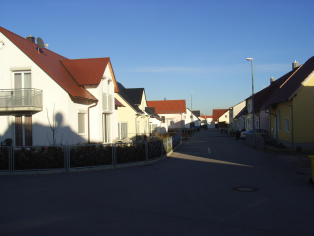 Kriegshaber: Mark-Twain-Str. im ehemaligen Supply Center, angenehm: jedes Haus sieht anders aus, 2008