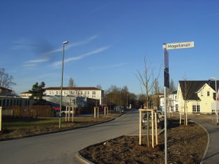 Kriegshaber: Ecke Columbusstr. Ecke Magellanstr., links Centerville-Schule, 2008