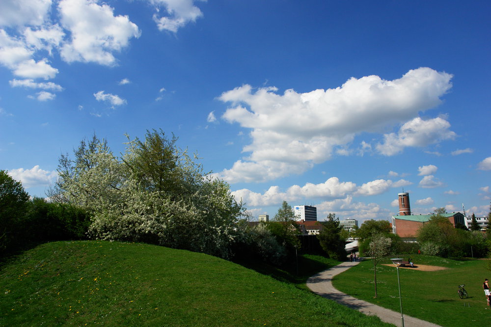 Kriegshaber: Osterfelderpark mit ev. Kirche St. Thomas 2009