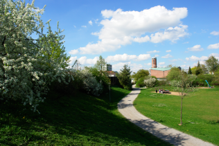 Kriegshaber: Osterfelderpark mit ev. Kirche St. Thomas 2009