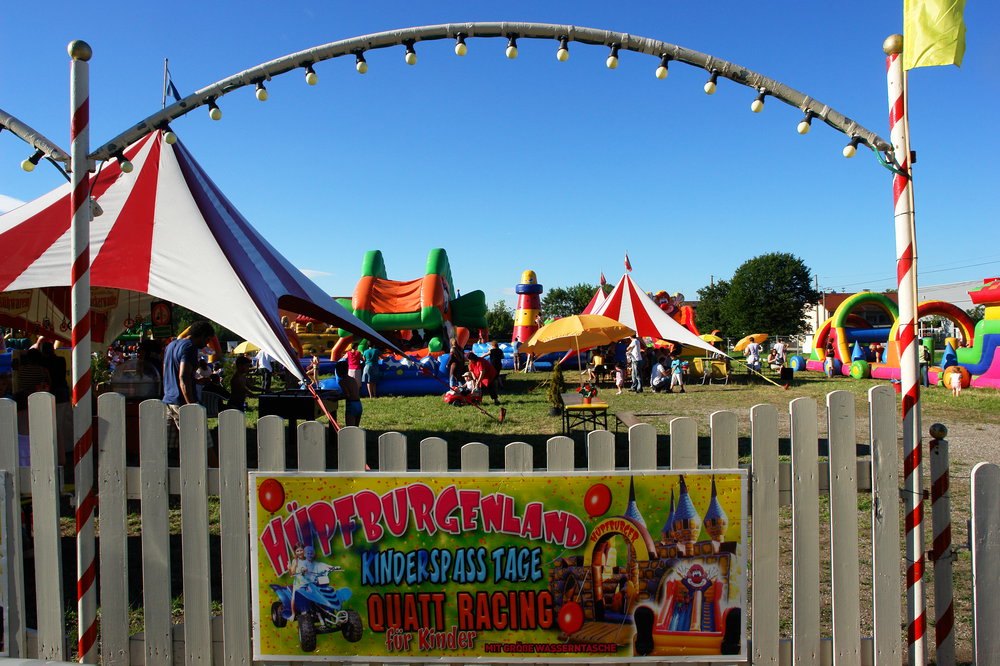 Kriegshaber: Huepfburgland auf dem Festplatz an der Bgm-Ackermann-Str. 15-Aug-2014