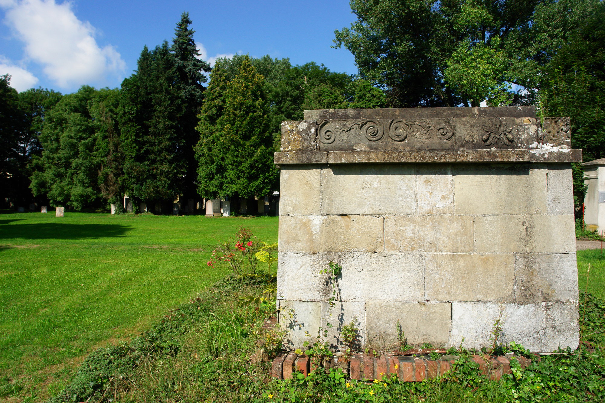 Kriegshaber juedischer Friedhof: Denkmal nach 1945 von Augsburger Steinmetzen aus zerstoerten Grabsteinen errichtet