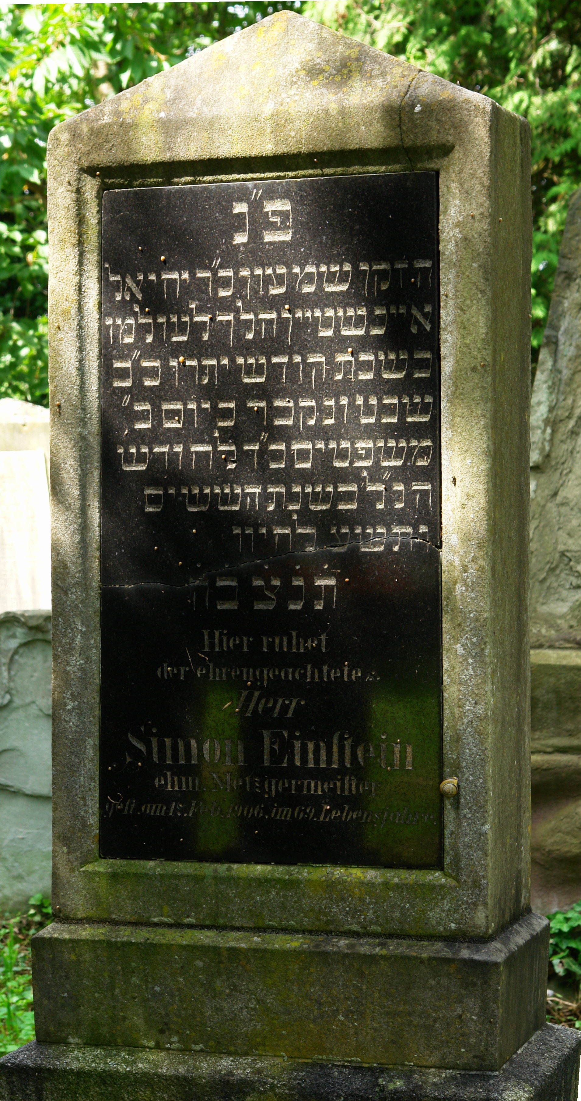 Kriegshaber juedischer Friedhof 2010: Simon Einstein ehemaliger Metzgermeister gestoben am 19. Februar 1906 im 69. Lebensjahr