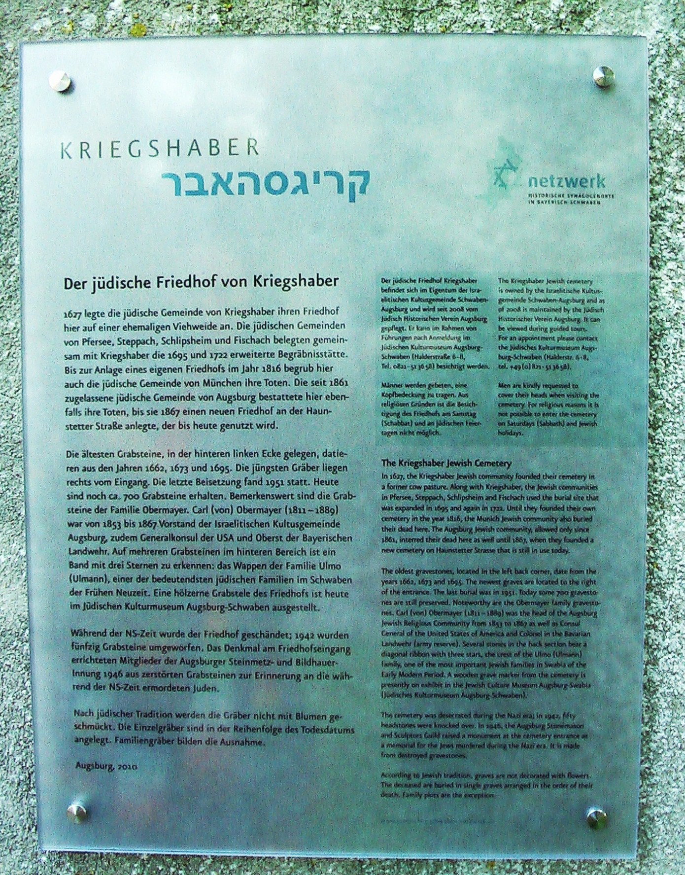 Juedischer Friedhof Kriegshaber:Tafel am Eiingang des Friedhof 2011: Madisonstrasse