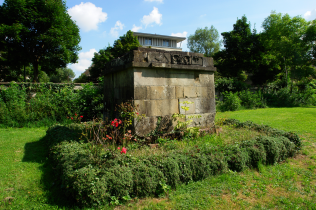 Kriegshaber juedischer Friedhof: Denkmal nach 1945 von Augsburger Steinmetzen aus zerstoerten Grabsteinen errichtet