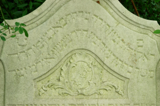 Kriegshaber juedischer Friedhof 2010: einer von mehreren Grabsteinen mit dem Wappen der Familie Ulmo (Ulmann), einer der bedeutendsten juedischen Familien im Schwaben der Fruehen Neuzeit