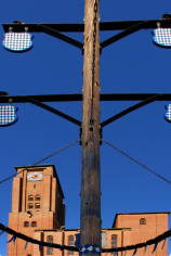 Schwertransport von MAN-Schiffsdiesel vor St. Thaddaeus 1985