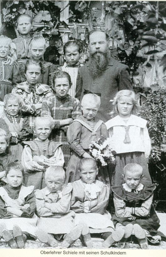 Kalenderblatt Ottmarshausen: Oberlehrer Schiele mit seinen Schulkindern