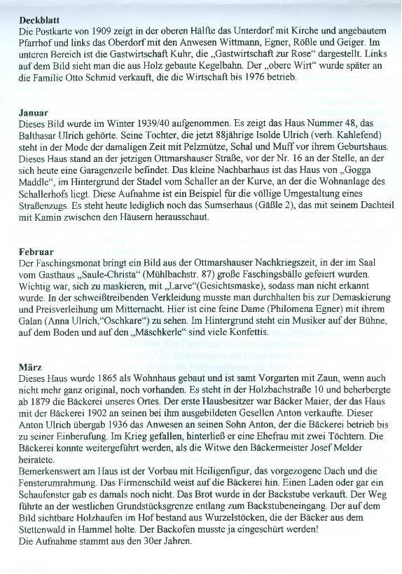 Kalenderblatt Ottmarshausen: Beschreibung der Blaetter
