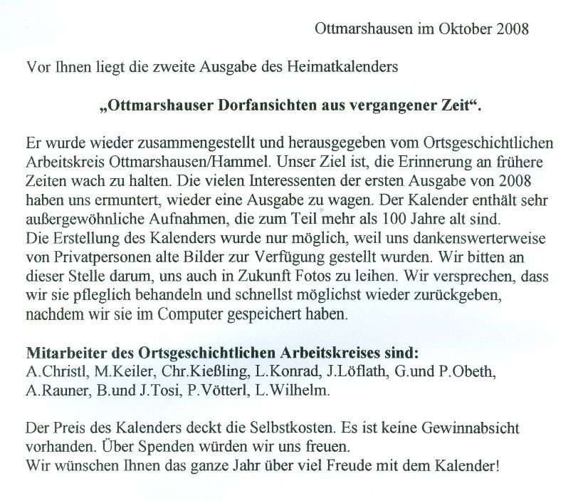 Kalenderblatt Ottmarshausen: Beschreibung der Blaetter Uebersicht