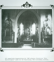 Kalender Kriegshaber 1985 Die neugotische Ausgestaltung der 1866 erbauten Pfarrkirche "Hlst. Dreifaltigkeit" wurde bei der Renovierung 1936 vollstaendig entfernt