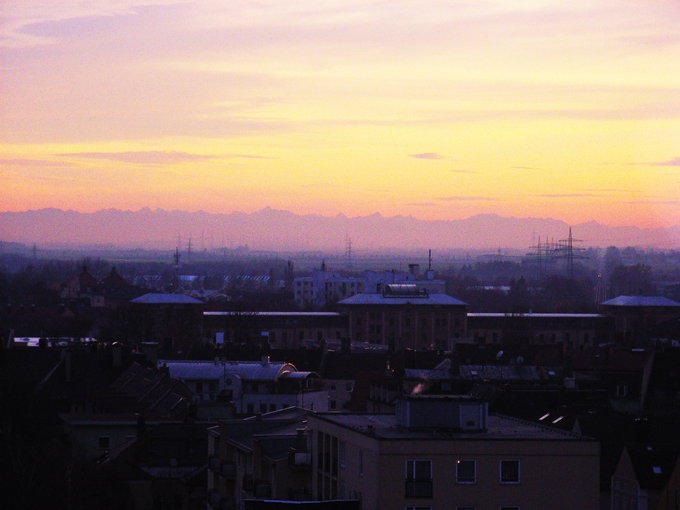 Blick vom Turm der Ulrichskirche in Augsburg, 2006: nach SSW Ammergauer und Tannheimer Berge