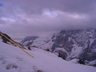 Sellaronda rosa (im Uhrzeigersinn): Standort Porta Vescovo auf Marmolada