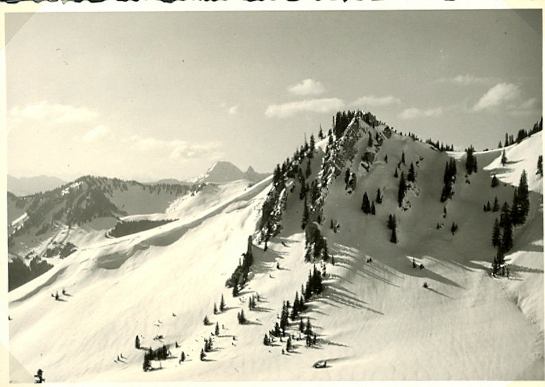 Schitour auf den Jägerkamp 1967: Blick auf Risserkogel und Plankenstein, vorne Wilde Fräulein