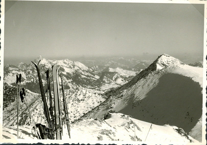 Schitour auf den Jägerkamp 1967: Blick auf Wendelstein und Aiplspitz