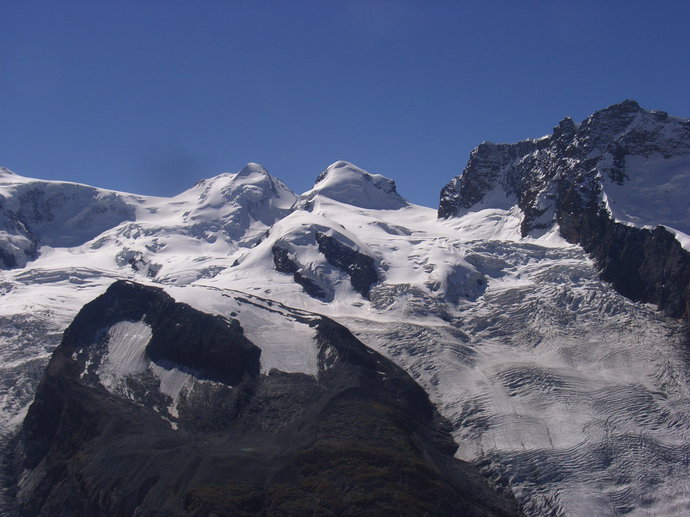 die Zwillinge Castor und Pollux mit Zwillingsgletscher und Breithorn, 2007