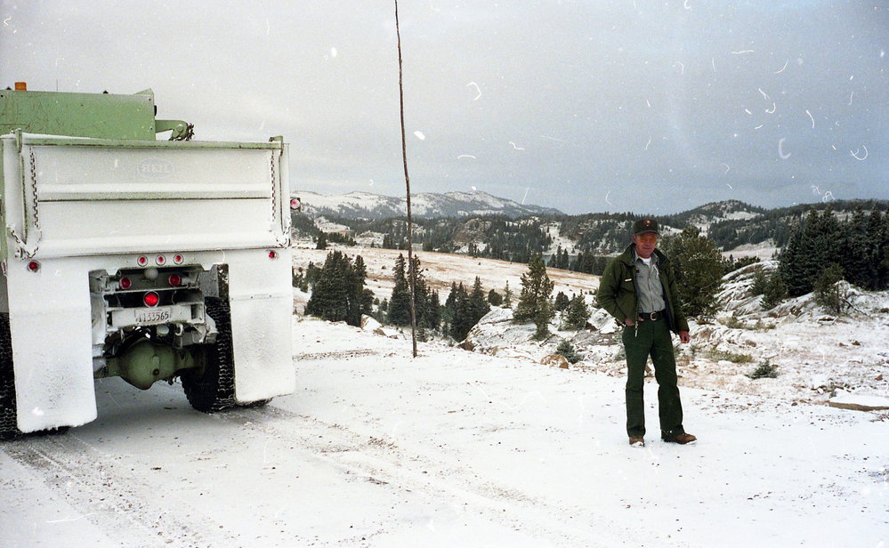 Naehe Bear Tooth Pass (10940 feet) auf der Fahrt zum Yellowstonepark, Sep-1989