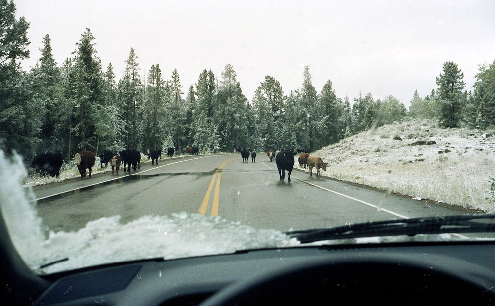 Naehe Bear Tooth Pass (10940 feet) auf der Fahrt zum Yellowstonepark, Sep-1989