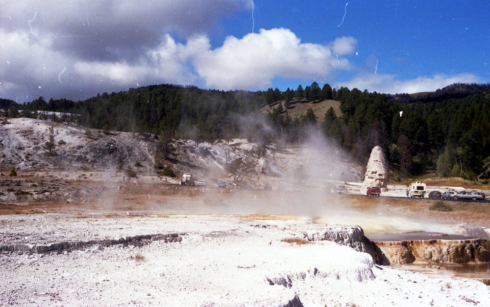 USA: Yellowstonepark Sep-1989: Heisse Quellen Sinterterrassen