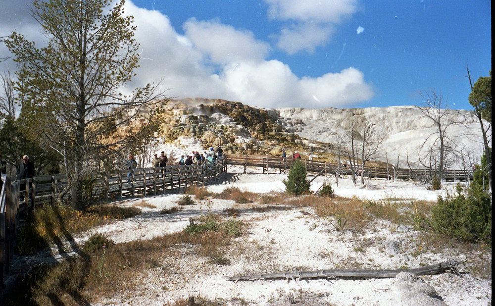 USA: Yellowstonepark Sep-1989: Heisse Quellen Sinterterrassen