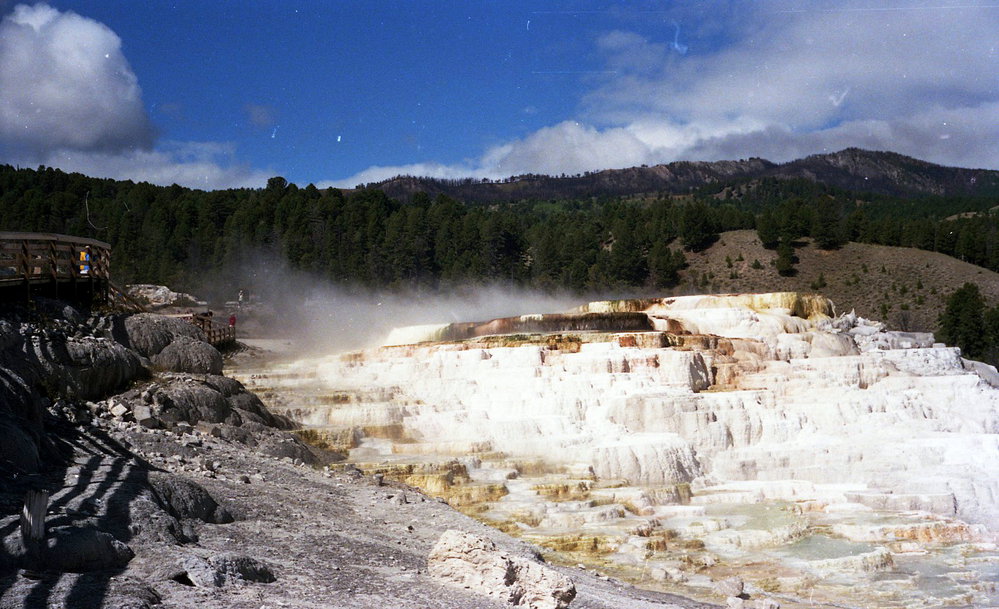 USA: Yellowstonepark Sep-1989: Heisse Quellen Sinterterrassen