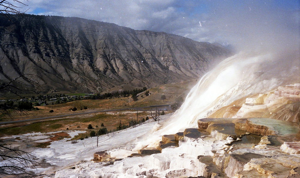 USA: Yellowstonepark Sep-1989: Heisse Quellen Sinterterrassen