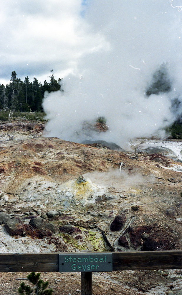 USA: Yellowstonepark Sep-1989: Heisse Quellen Sinterterrassen und Geysire