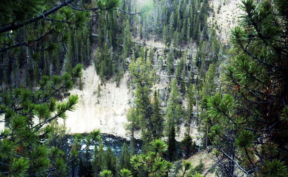 USA: Yellowstonepark 1989: beim Wasserfall des Yellowstone Rivers