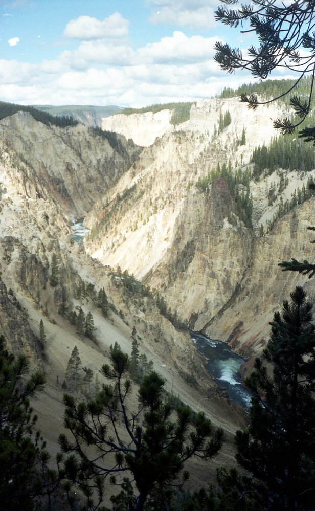 USA: Yellowstonepark 1989: beim Wasserfall des Yellowstone Rivers