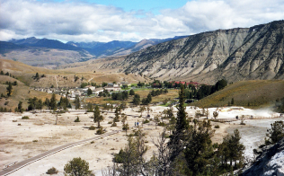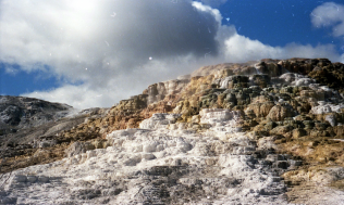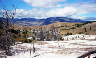 USA: Yellowstonepark Sep-1989: Heisse Quellen Sinterterrassen
